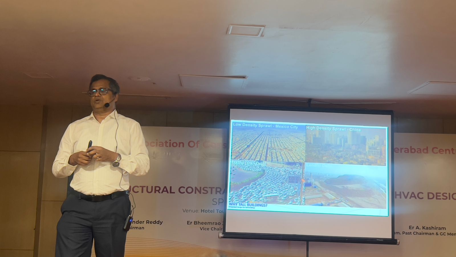 “In today’s world, understanding the structural constraints is paramount to designing efficient HVAC systems that ensure both functionality and sustainability,” stated Dr.RevurVSS Prasad, Ph.D. Presenting a keynote address on “Structural Constraints and Spatial Needs for HVAC Design,” in a session organized by the Association of Consulting Civil Engineers (India), Hyderabad Centre, in collaboration with the ASHRAE Deccan Chapter, in Hyderabad on Friday (28th Feb, 2025), he emphasized the necessity of integrating HVAC design within the broader context of civil engineering to address contemporary challenges.